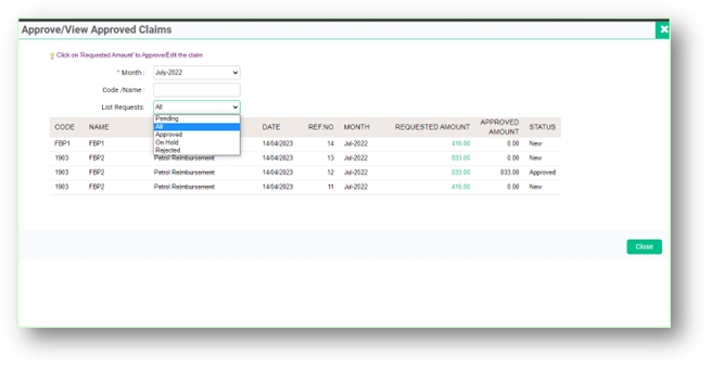 Once the employee submits the FBP claims, you can approve them and track their status.